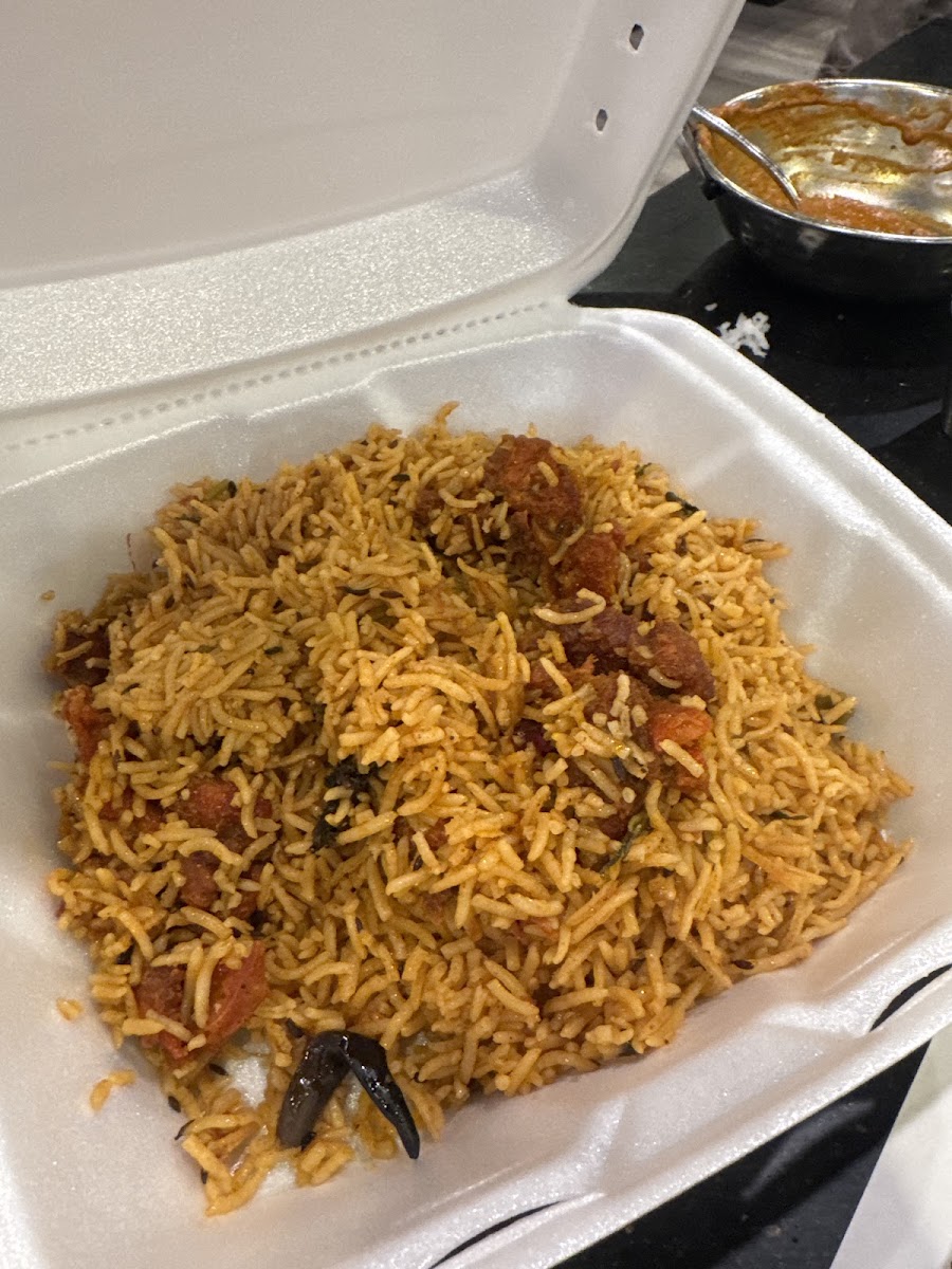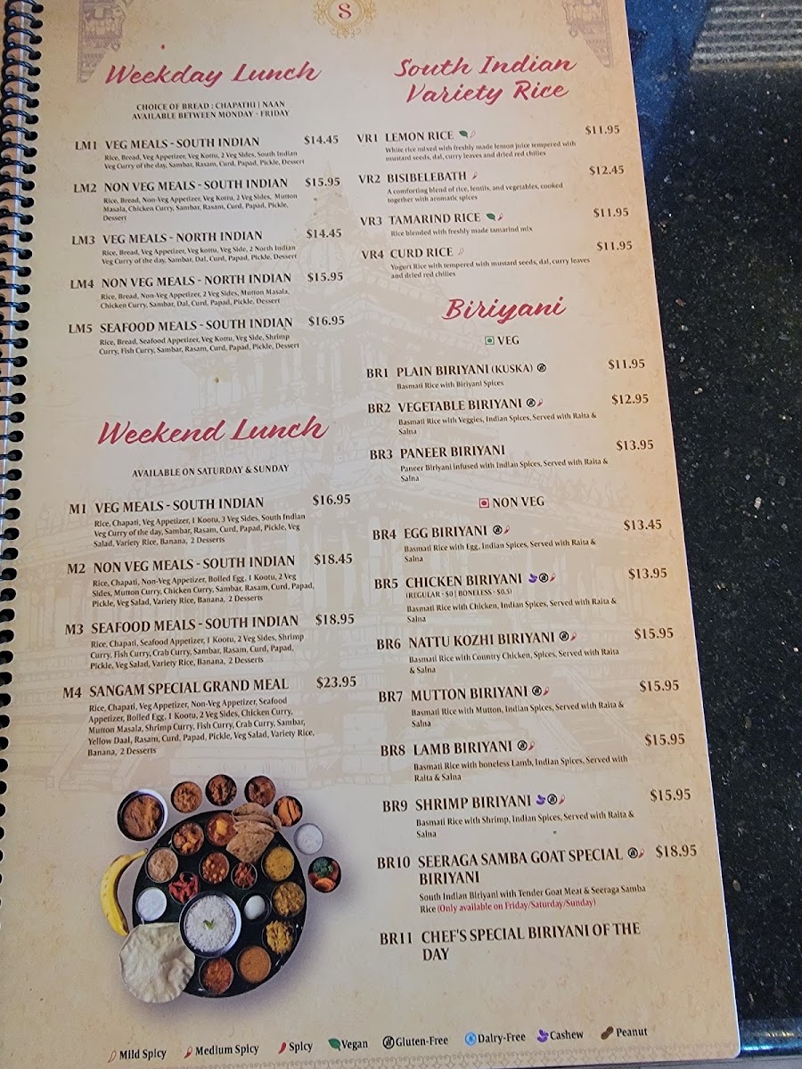 Sangam offers authentic South Indian food, complete with traditional decor. I had the chicken masala; it was a bit spicy for me, and the rice was plain, but they served a generous portion of chicken.