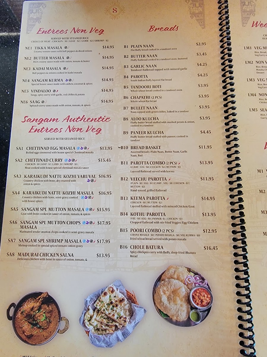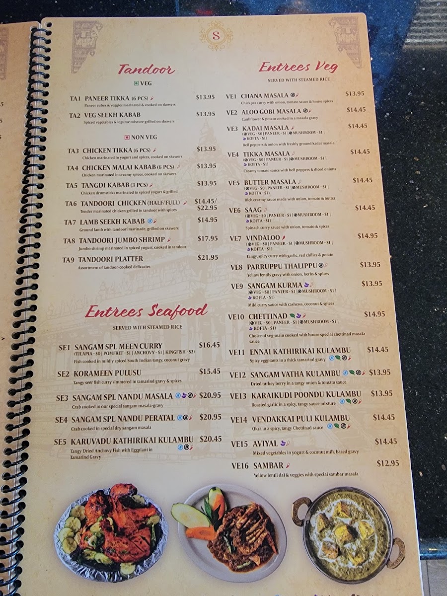 Step into Sangam, and you're greeted with an inviting ambiance that harmoniously blends traditional decor with a touch of modern warmth. The spacious layout, adorned with intricate designs and soft lighting, sets the perfect backdrop for a comforting dining experience. From the moment you enter, you'll feel the warmth emanating from both the welcoming staff and the air filled with intoxicating aromas of spices.