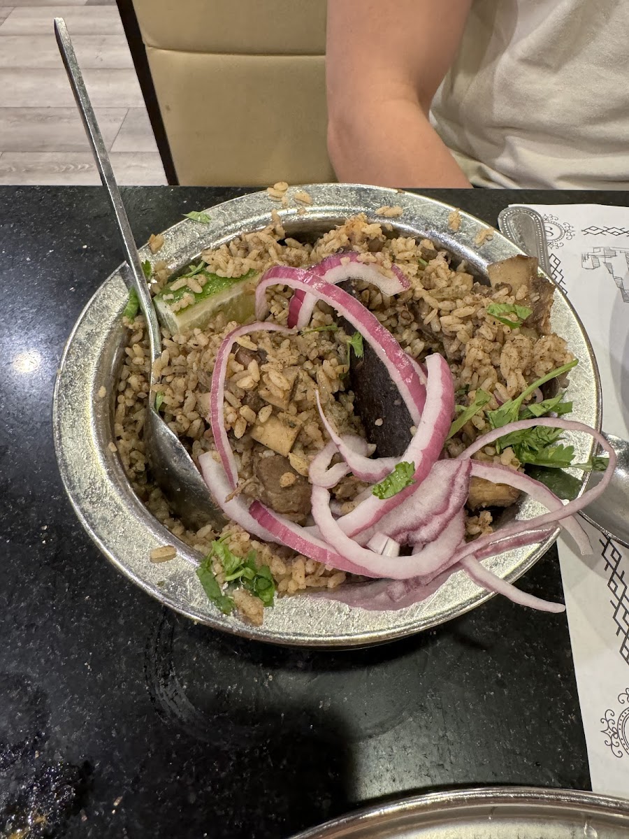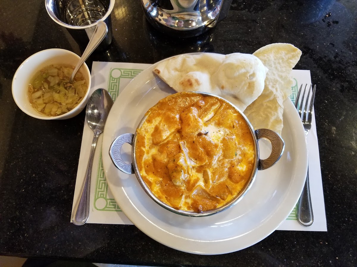 Just a fantastic spot, had this amazing 3 juice drink non alcohol. Got 3 different dishes unfortunately I can’t name them lol. Garlic naan was fantastic too. Great atmosphere with nice decorations hanging from the ceiling. 1 and only complaint was this door they kept going in and out of to serve outside guests was close to my booth, and it kept slamming and vibrating my seat. Place is super packed at lunch and dinner during the weekends. Not sure how it is during the week.